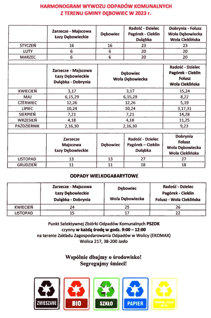 Harmonogram wywozu odpadów 2023